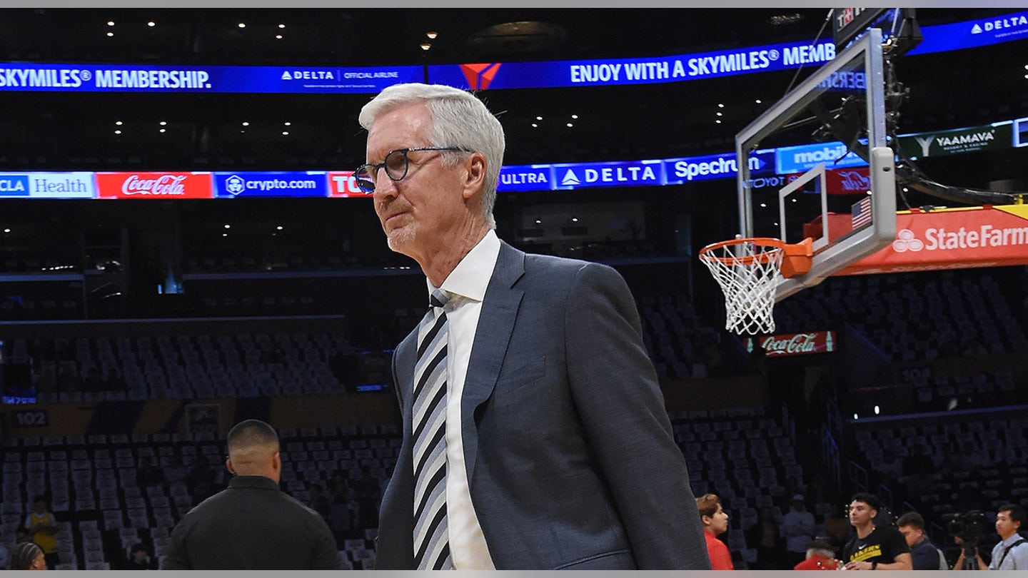 Mike Breen looks on before the game between the Golden State Warriors and the Los Angeles Lakers during Round 2 Game 3 of the Western Conference Semi-Finals 2023 NBA Playoffs on May 6, 2023 at Crypto.Com Arena in Los Angeles, California. (Andrew D. Bernstein/NBAE/Getty Images)
