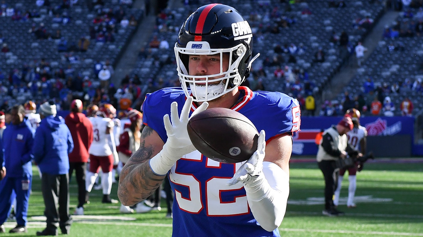 New York Giants Linebacker Carter Coughlin warms up to the Washington Commanders game at Metlife Stadium on December 4, 2022. (Rich Barnes-usa Today Sports)