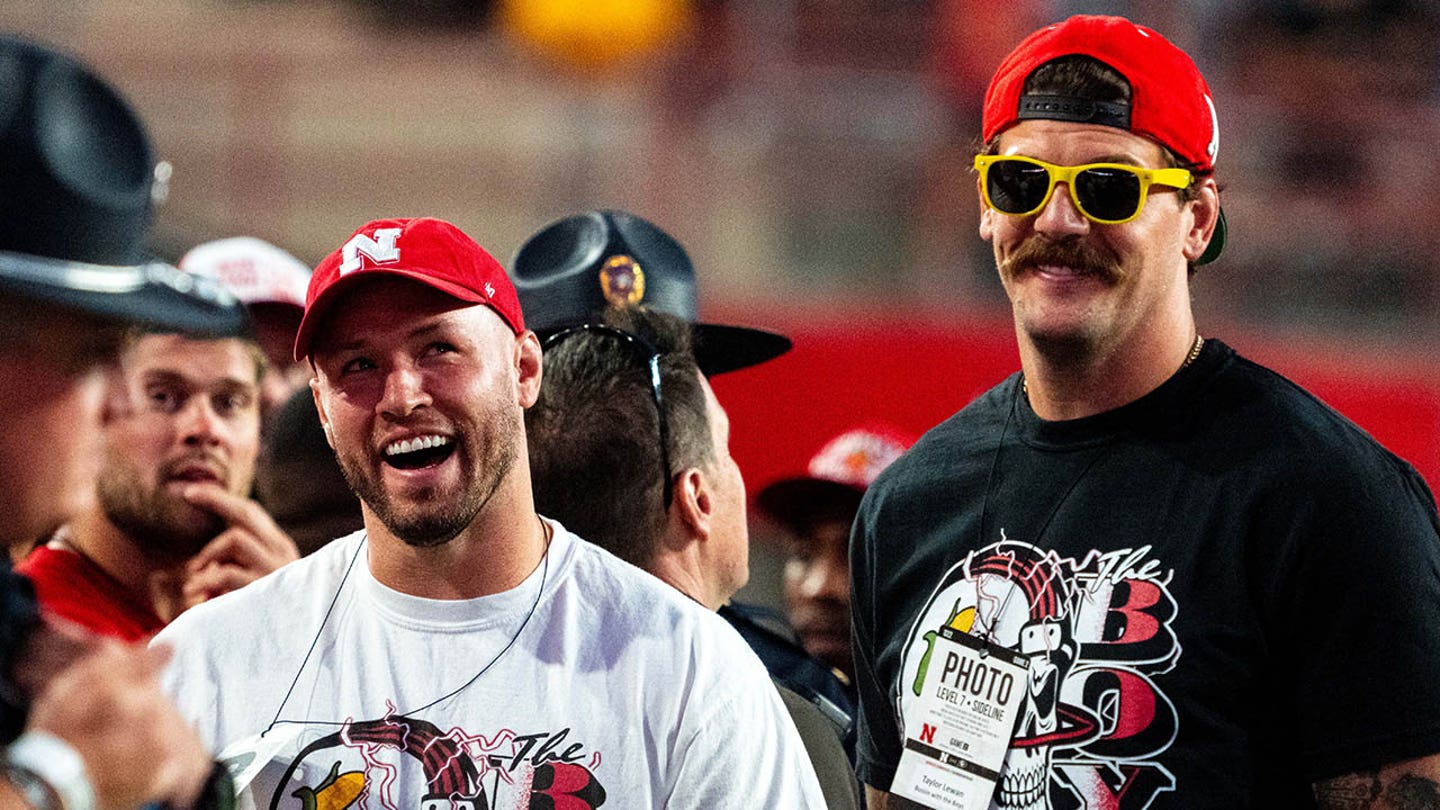 Will Compton and Taylor Lewan from “Bussin ‘With The Boys” are on the sidelines under the Nebraska Cornhuskers and Colorado Buffaloes game at Memorial Stadium in Lincoln, Nebraska, September 7, 2024. (DYLAN WIDGER-INFORMATION PICTURES)