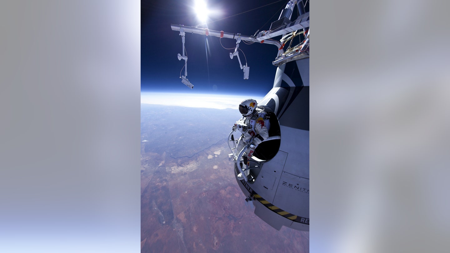 Austrian Daredevil Felix Baumgartner is ready to jump from his capsule at an altitude of approx. 71,500 feet 15 March 2012. (Jay Nemeth/Red Bull Content Pool)