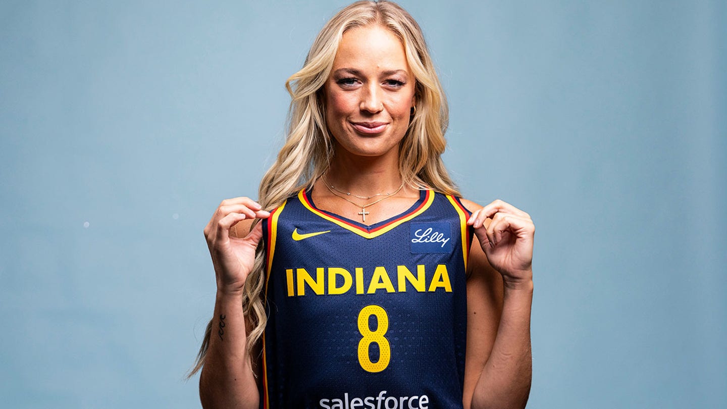 Indiana Fever Guard Sophie Cunningham poses for a photo 30 April 2025 under Indiana Fever Media Day at Gainbridge Fieldhouse in Indianapolis. (Grace Smith/Indystar/USA Today Network via Imag images)