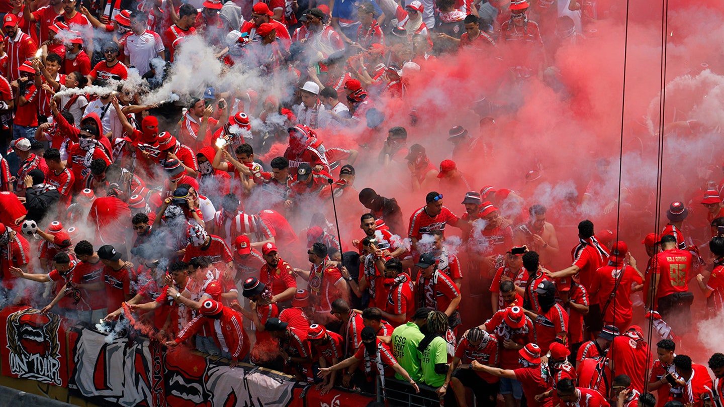 Wydad Casablanca fans with torches in the stands during a group step match in the FIFA Club World Cup in 2025 at Lincoln Financial Field. (Brian Snyder-Reuters via Imag images)