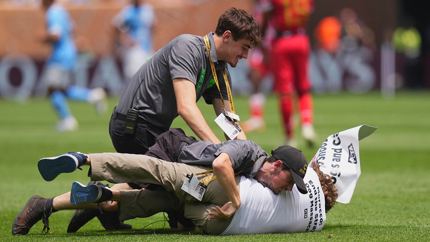A demonstrator invaded the pitch and fans released smoke fellows during Wednesday’s club world championship in Philadelphia. (AP; IMAGN)
