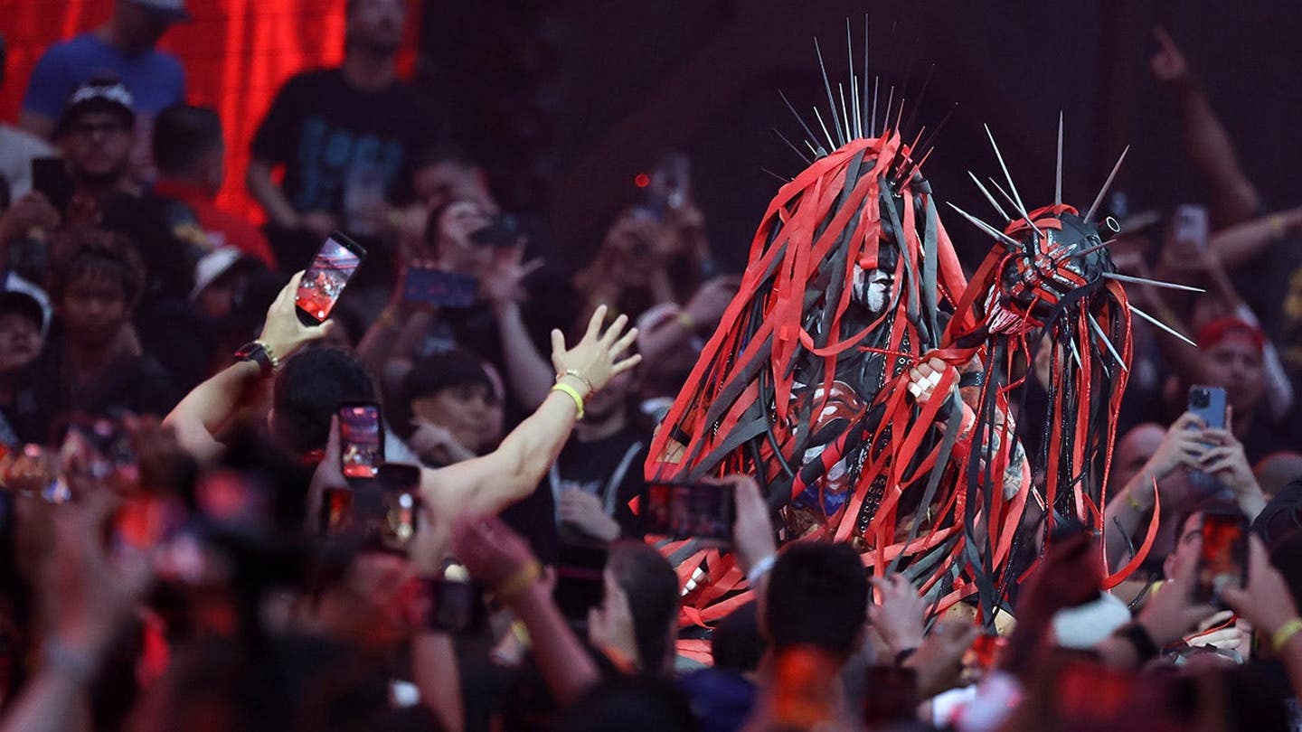 Balor came to the ring in his “Demon” gear, dripping with red and black paint. Mysterio was masked with other Mysterio supporters.