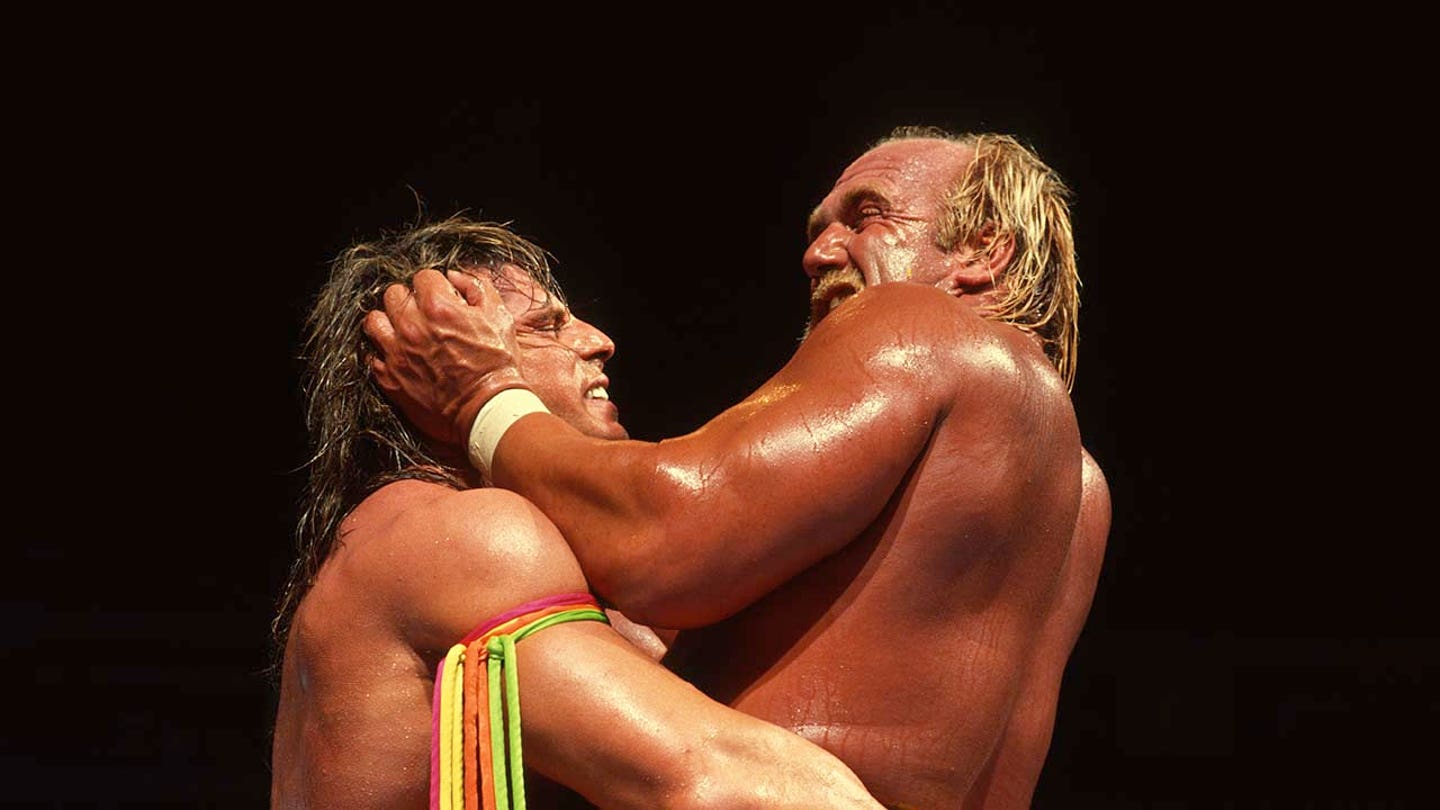 Hollywood Hulk Hogan, right and the cliff at Wrestlemania X8. (George Pimentel/WireImage)