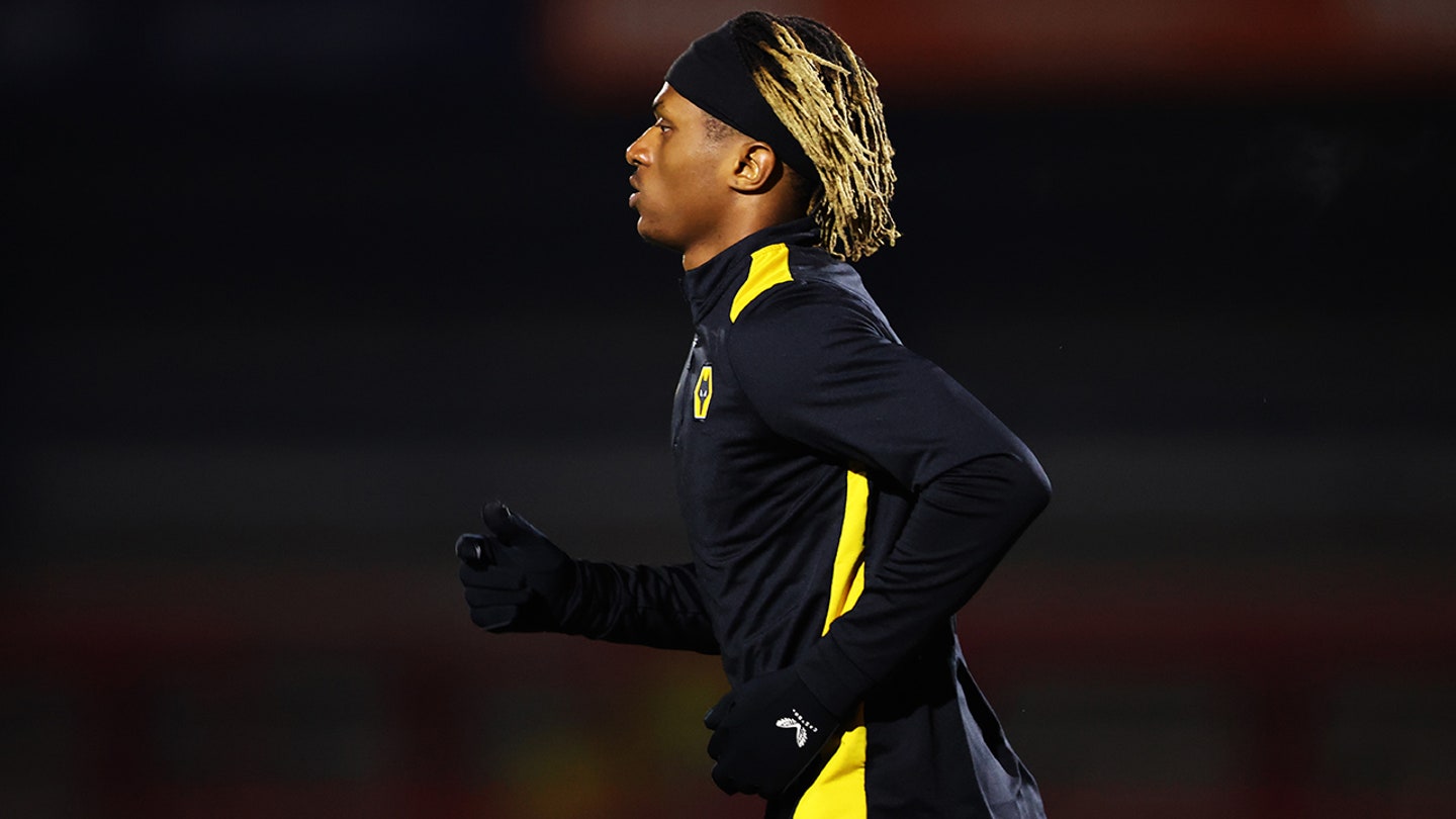 Ethan McLeod, then of Wolverhampton Wanderers, warms up ahead of the Premier League International Cup between Wolverhampton Wanderers and OGC Nice at Aggborough Stadium on November 29, 2023 in Kidderminster, England. (Cameron Smith/WWFC)