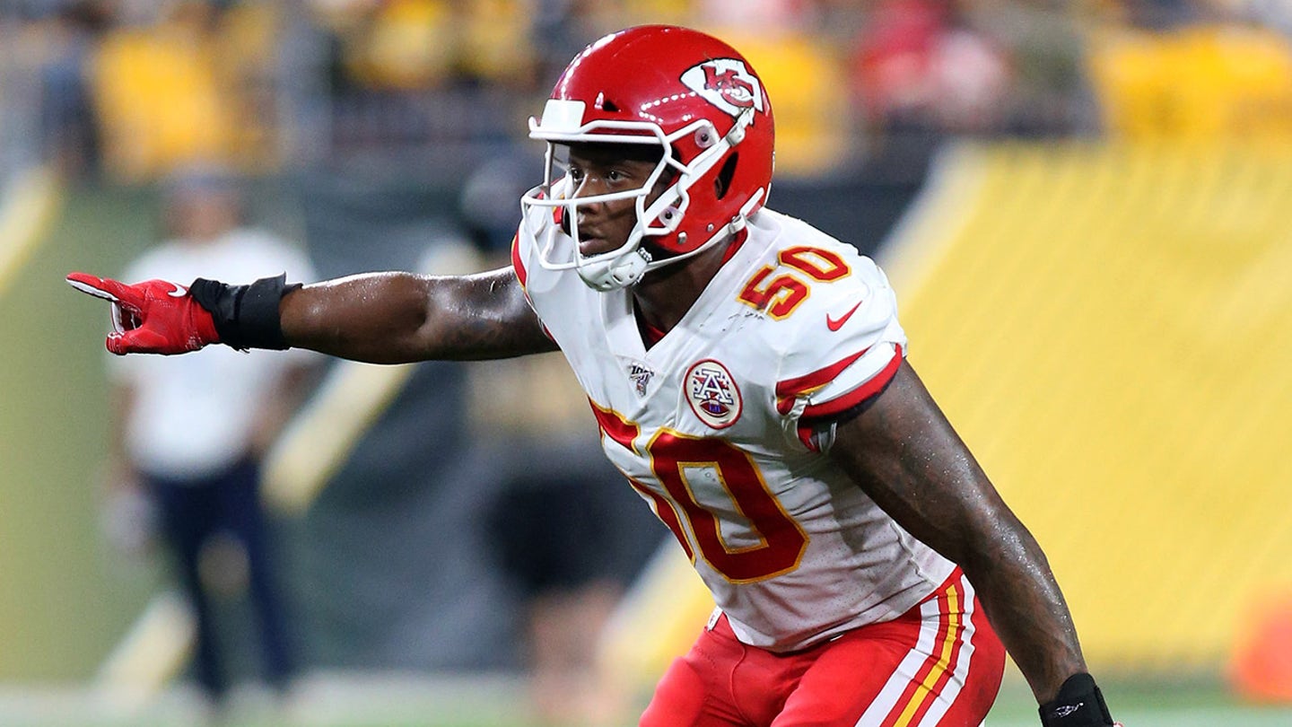 Kansas City Chiefs linebacker Darron Lee (50) reacts while defending against the Pittsburgh Steelers in the second quarter at Heinz Field. Pittsburgh won 17-7 in Pittsburgh, Pennsylvania on August 17, 2019. (Charles LeClaire/USA TODAY Sports)
