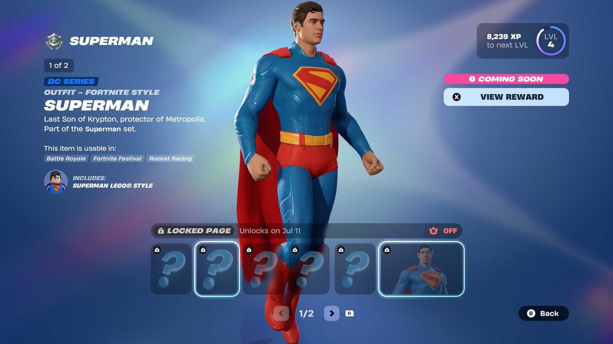 Epic usually describes the benefits of bonus skins as Superman, closer to their launch date. Upon release, the Superman skin will have five extra rewards to earn, with five more added a week after. This is how bonus skins have worked for a while, so hopefully Superman will follow. If something changes we will be sure to update this page.