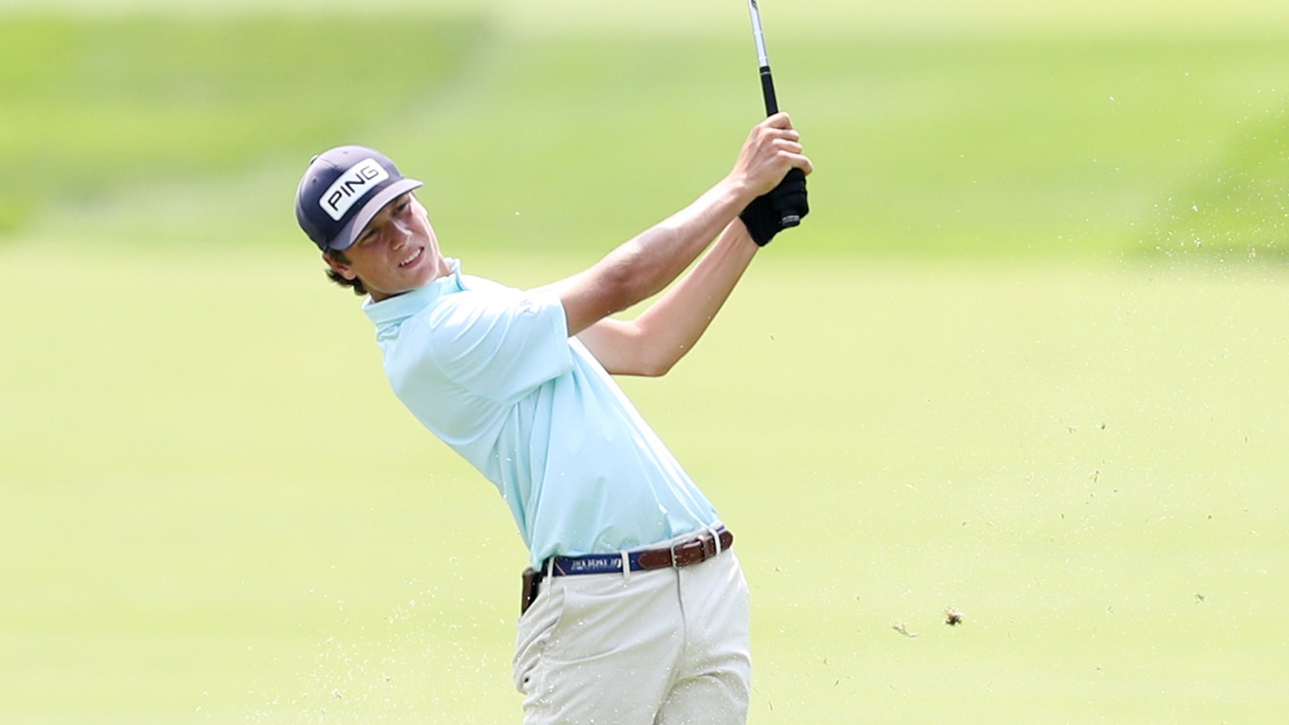 Mason Howell sees his shot during the American junior amateur championship in Bloomfield Hills, Mich., On July 23, 2024. (Raj Mehta/Getty Images)