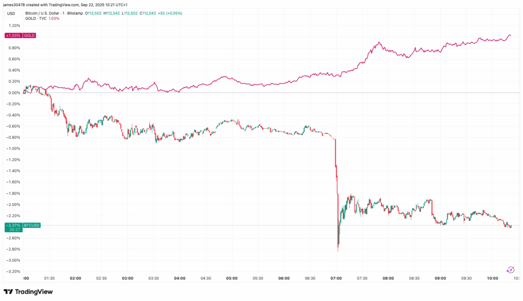 The metal that now deals with $ 3,721 went about an hour after Bitcoin Seen by some advocates as a digital form of audio money, a 24-hour drop sent 3%that lowered its price to $ 112,000 and its year to date for 17%. The timing suggests the possibility that the profits from Bitcoin liquidations rotated to gold.