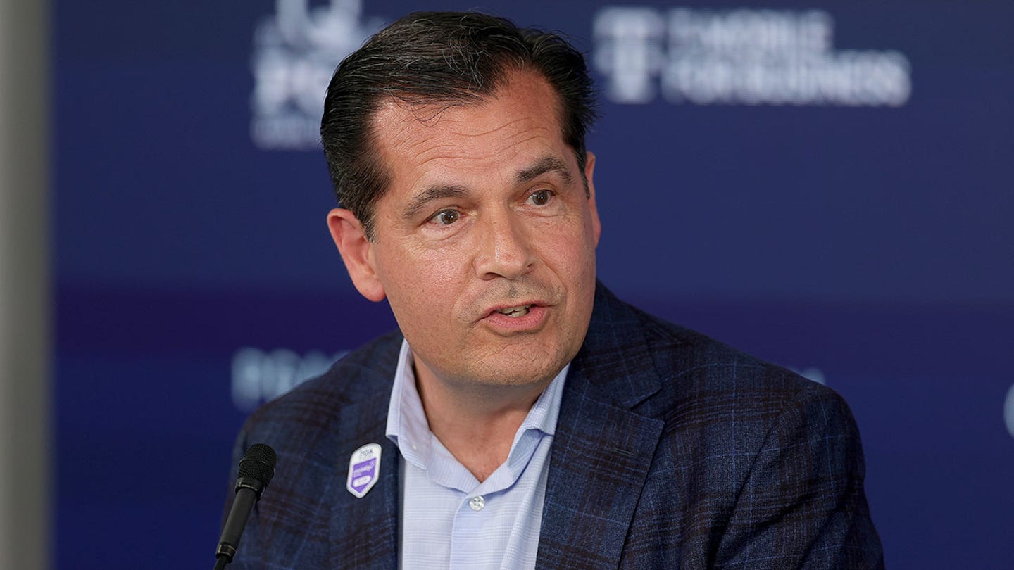 Derek Sprague, PGA of America CEO, attends a press conference next to the Black Course at Bethpage State Park Golf Course on September 17, 2025 in Farmingdale, NY (Bruce Bennett/Getty Images)