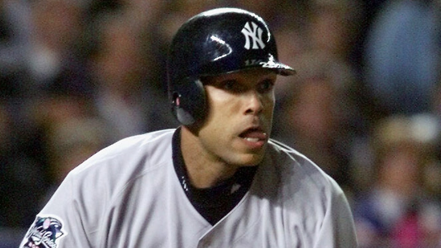 Yankees’ David Justice after striking a RBI double against Mets, tying the scoring during the third game of the World Series at Shea Stadium in New York on October 24, 2000. (H. Darr Beiser/USA Today-usa Today Network)