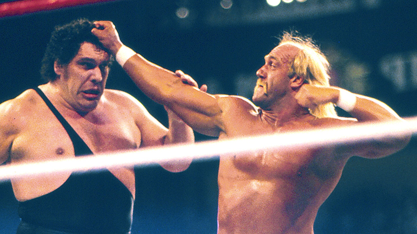 Hulk Hogan against others The Giant at Wrestlemania VL in March 1988 in Convention Hall in Atlantic City, NJ (Jeffrey Asher/ Getty Images)