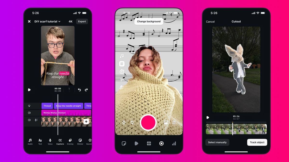 More advanced effects, such as carvings that allow you to isolate a person or object on the screen with tracking or antimat, which is likely to use a meta LLM, can transform images into video into engaging moments are also included.