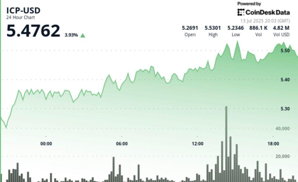 At the time of writing, ICP is about $ 5.48, an increase of 4% over the last 24-hour period, according to Coindesk Research’s technical analysis model.