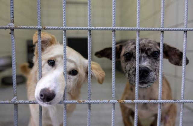 Stray dogs look out from behind bars as they undergo treatment at the Istanbul Municipality Animal Rehabilitation Center in Istanbul, Turkey, May 27, 2024. PHOTO: REUTERS