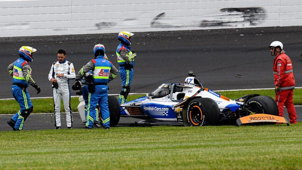 “It was a bit crazy there at first. I was really tight behind Takuma (Sato),” Larson told Fox after leaving the Infield Care Center. “I was really close to him. I got loose, and then I came a little everywhere and spun. Yes, just hate … I got a little too keen there on reboot and caused that crash. Hate it for everyone who was caught by it. Yes, bummed out.