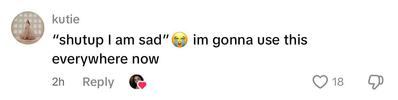 “‘Shut up, I’m sad’ 😠I want to use this everywhere now.” Us too!