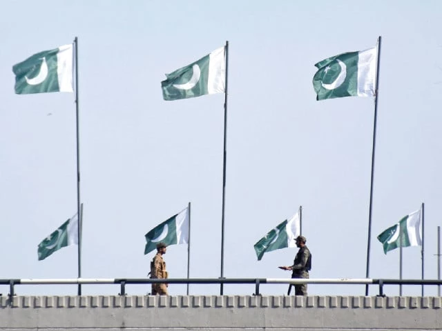 Security personnel stand guard at the Zero Point Bridge in the federal capital amid heightened vigilance ahead of the second round of US-Iran talks. PHOTO: ONLINE
