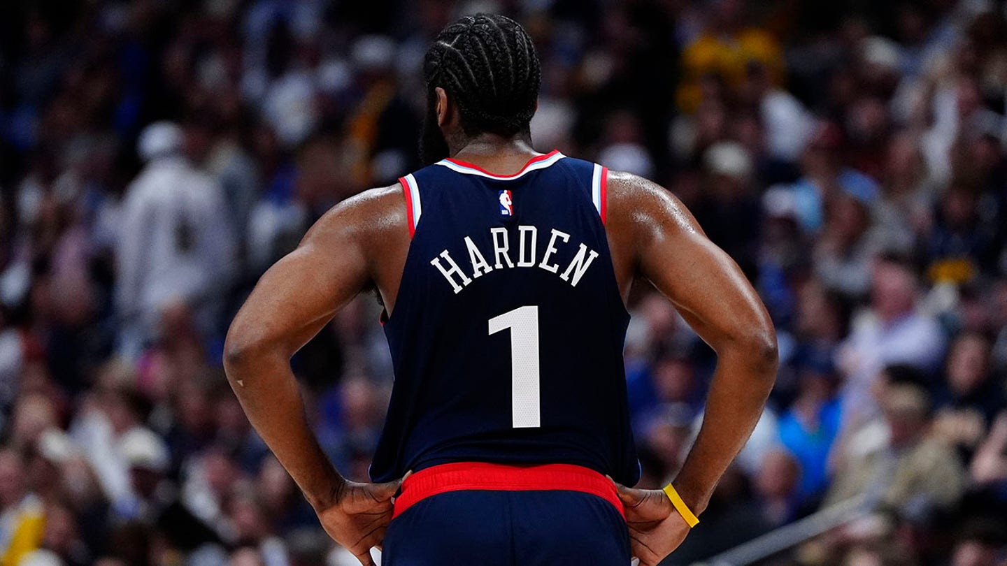 Los Angeles Clippers Vagt James Harden (1) in the third quarter against Denver Nuggets during match two of the first round for the 2025 NBA end game in Ball Arena on April 21, 2025 in Denver, Colorado. (Isaiah J. Downing/Imag images)