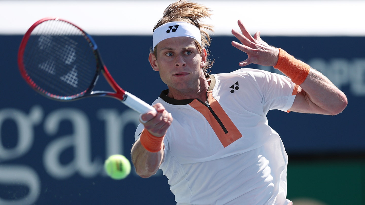 Zizou Bergs from Belgium returns to Jaume Munar from Spain during their men’s singles Third round match on day seven of the 2025 US Open in Usta Billie Jean King National Tennis Center on August 30, 2025 in the flush neighborhood of Queens Borough of New York City. (Clive Brunskill/Getty Images)