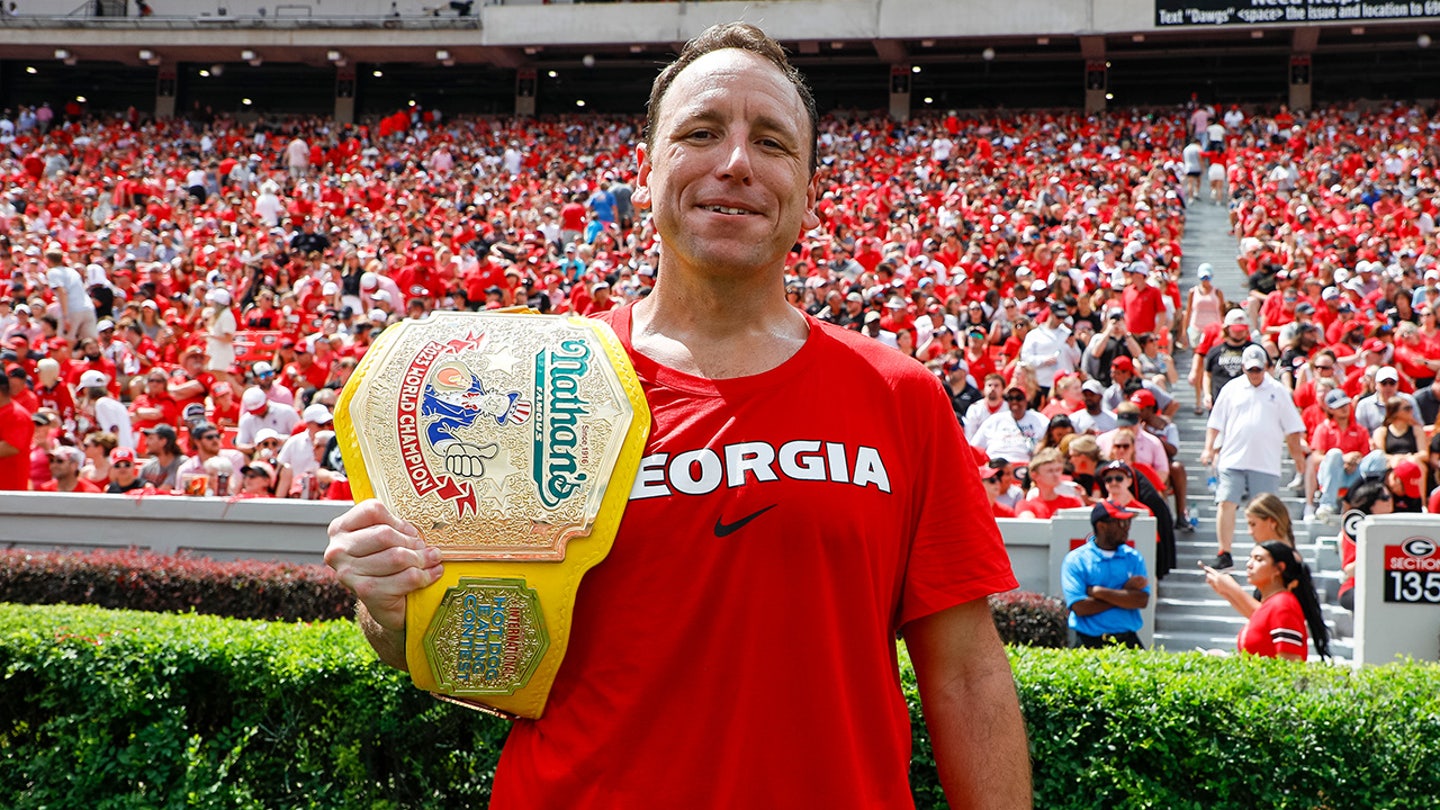 Competitive Eater Joey Chestnut, with his mustard yellow championship belt during a game between Georgia Bulldogs and Ball State Cardinals at Sanford Stadium on September 9, 2023 in Athens, Georgia. (Brandon Sloter/Image of Sport/Getty Images)