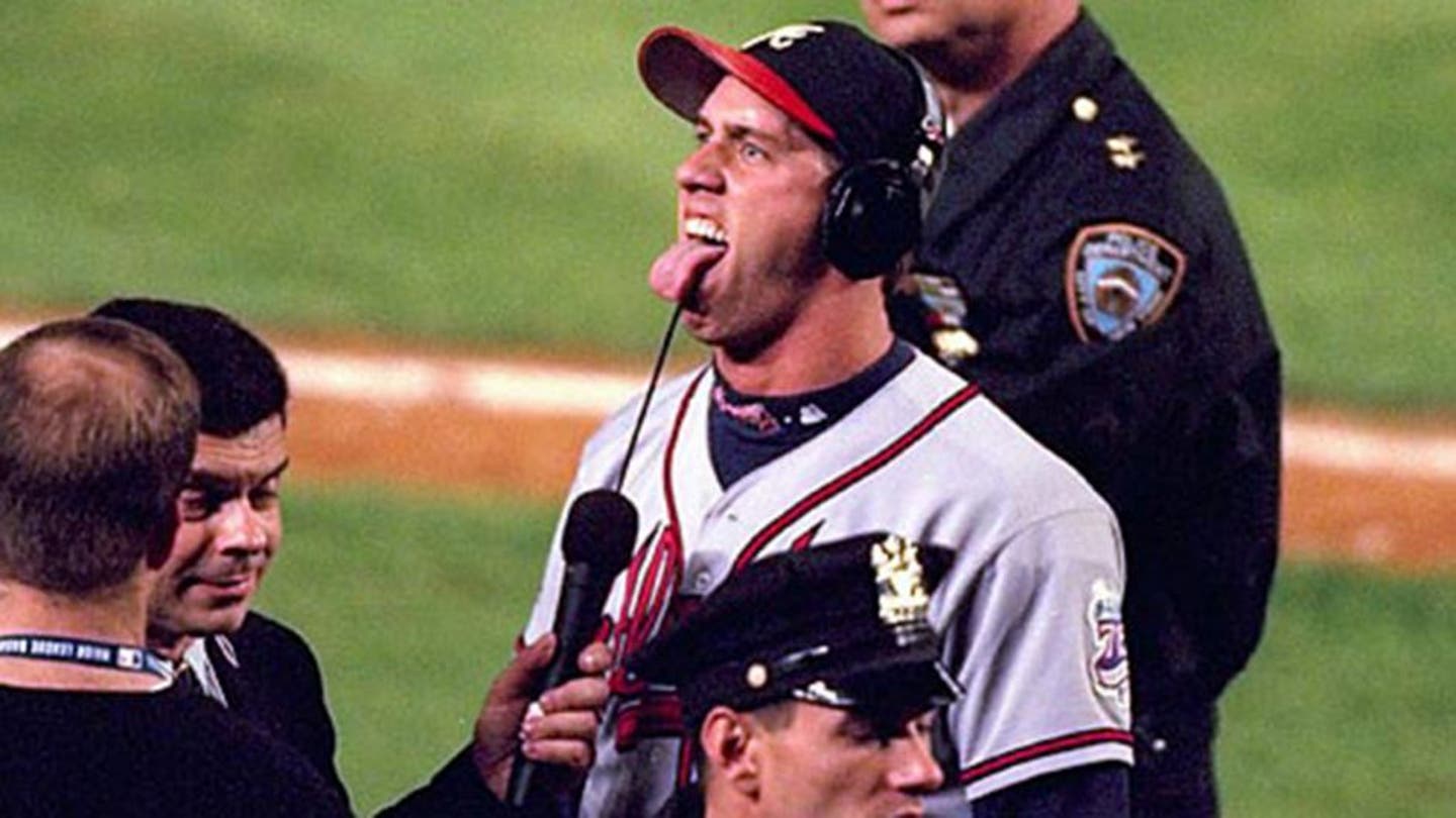 Atlanta Braves John Rocker Taunts Fans during a media interview after Game 5 in the National League Championship Series vs. New York Mets in Flushing, New York, October 17, 1999. (Al Tielemans/Sports Illustrated)