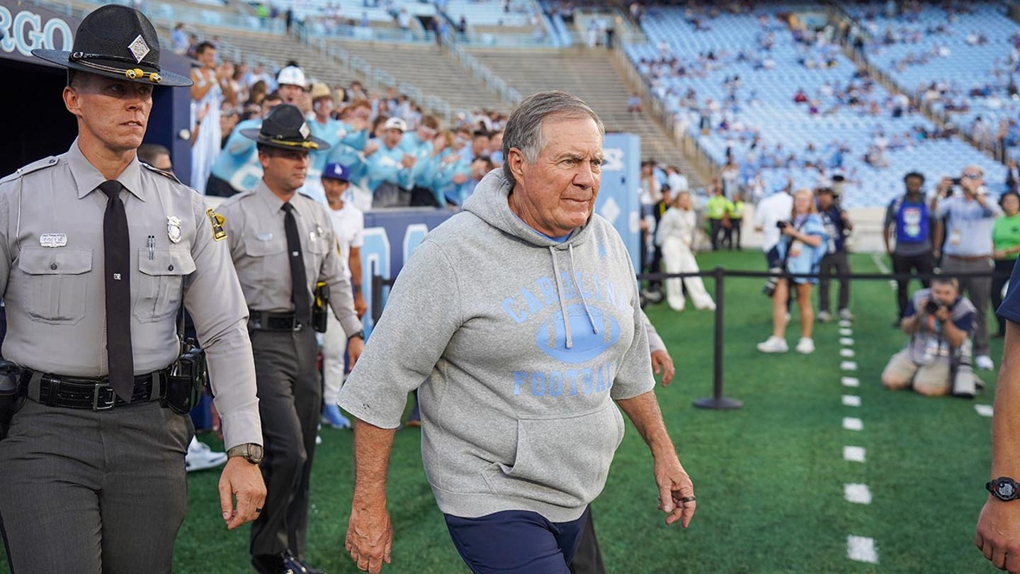 Main coach Bill Belichick of the University of North Carolina Tar Heels goes on the field before the game against Texas Christian University Horned Frogs at Kenan Stadium on September 1, 2025 in Chapel Hill, North Carolina. (Alex Halloway/Getty Images)