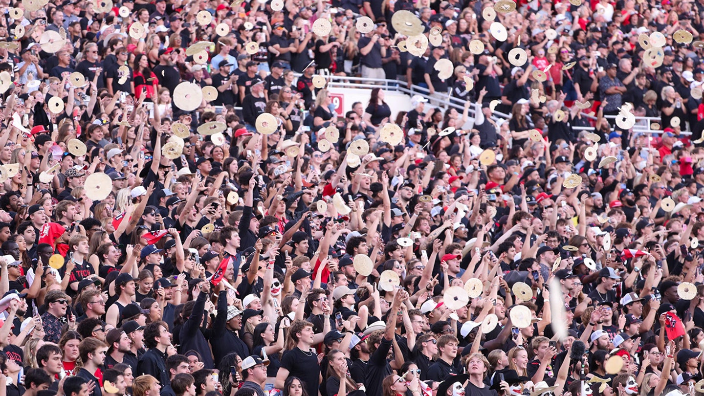 Texas Tech fans toss tortillas prior to a Big 12 Conference football game, Saturday, Oct. 11, 2025, at Jones AT&T Stadium in Lubbock. (Nathan Giese/Avalanche-Journal/USA Today Network via Imagn Images)
