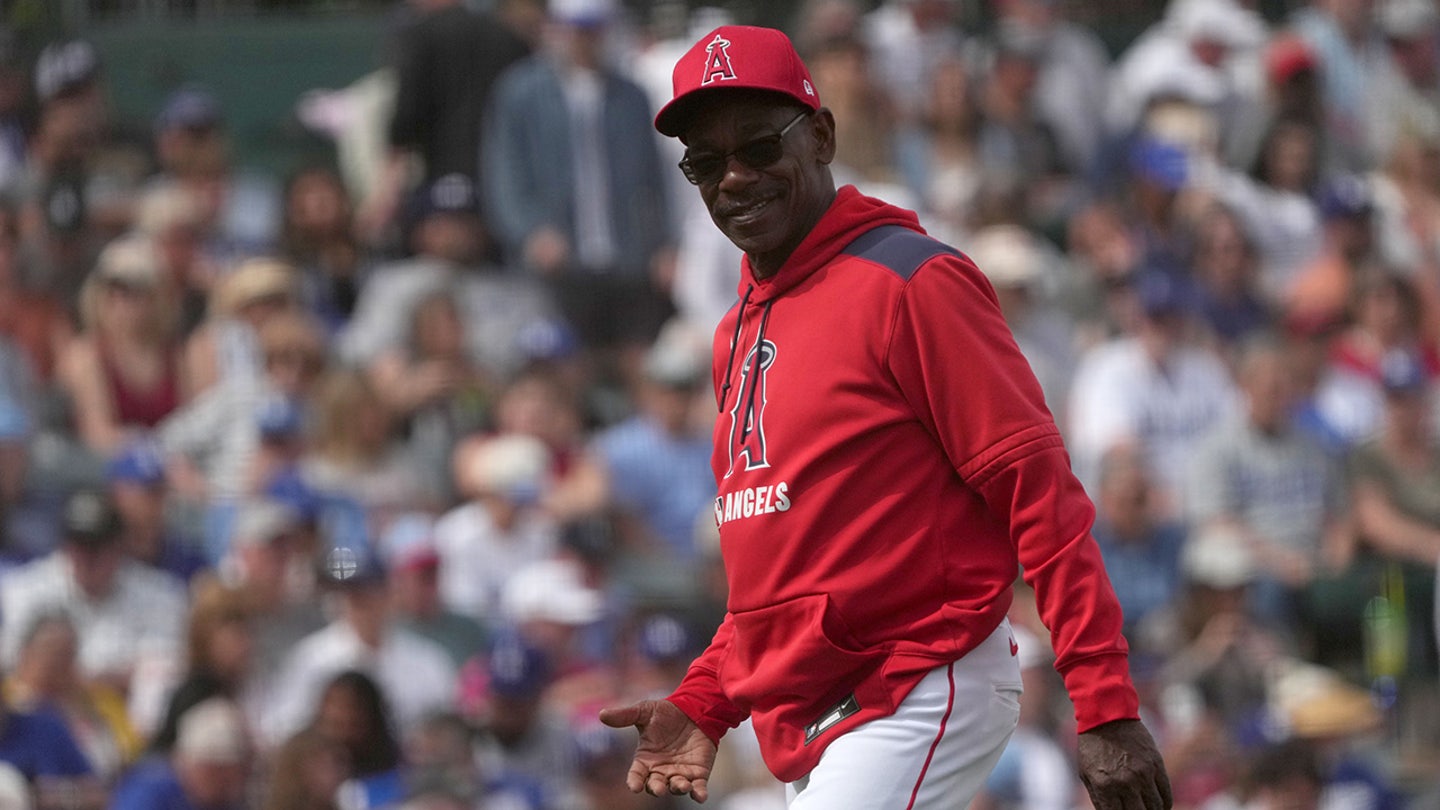 Los Angeles Angels Manager Ron Washington walks away from Haugen towards Los Angeles Dodgers in the third round at Tempe Diablo Stadium March 5, 2025. (Rick Scuteri/Imag images)