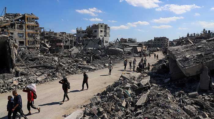 Palestinians pass by the rubble of broken buildings, in the middle of a ceasefire between Israel and Hamas, in Gaza City, October 14, 2025. – Reuters