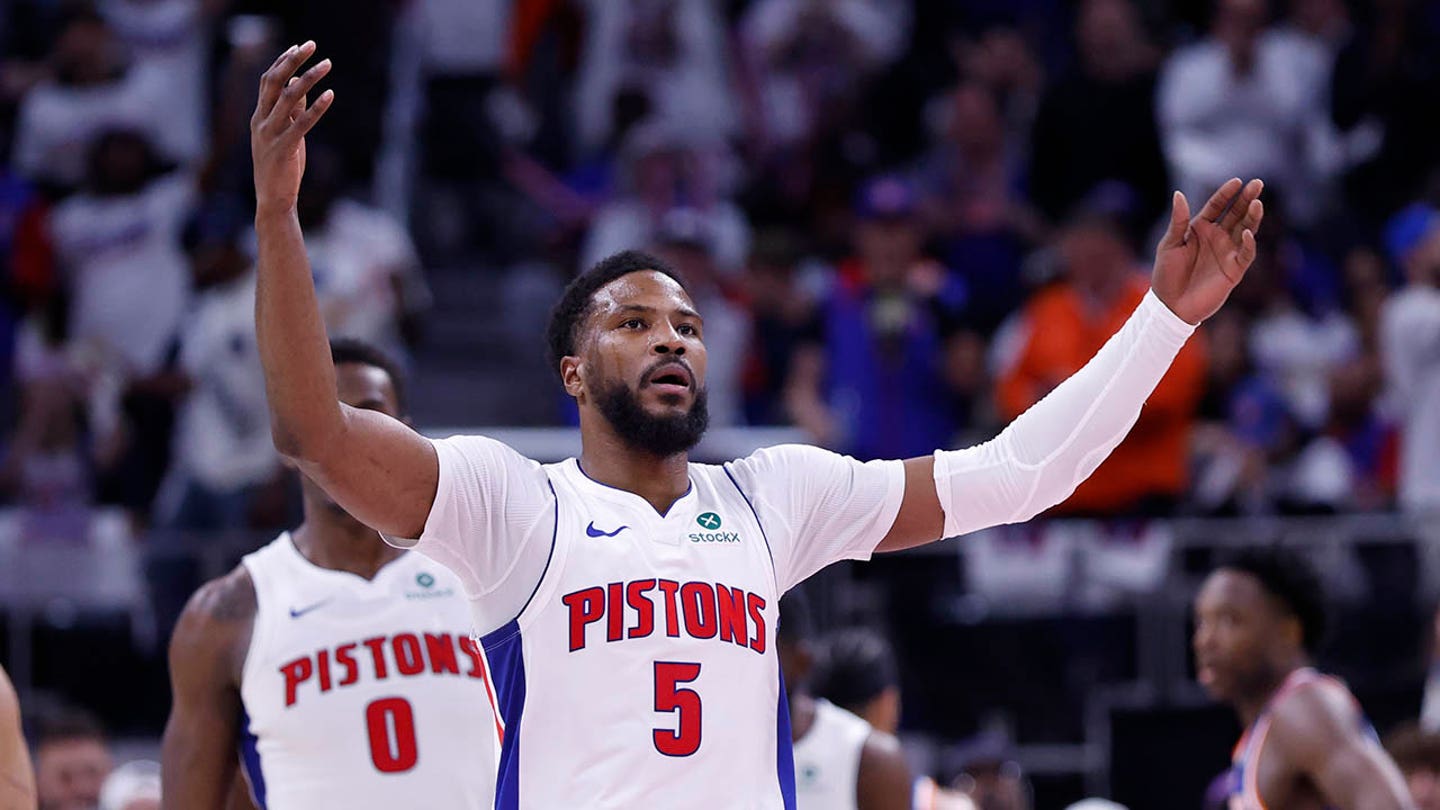 Malik Beasley looks at during a game against Oklahoma City Thunder at Little Caesars Arena, March 15, in Detroit, Mich. Beasley is reportedly no longer the focus of a federal gaming study. (Nic Antaya/Getty Images)
