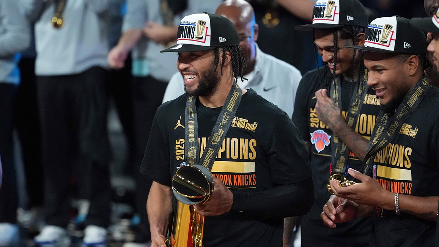All-star guard and NBA Cup MVP Jalen Brunson admitted the trophy was “awesome and we’re going to enjoy this. But once we leave tomorrow, we’ll move on.”