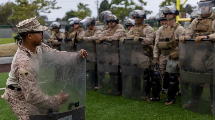 The marines would join the National Guard under the authority of a federal law known as section 10, not to carry out civilian police work, but to protect federal officers and property, the military said.