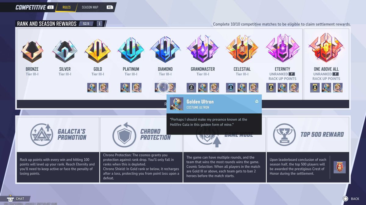 Well Gold Rank before the end of season 2.5 to earn the golden ultronic skin when the new season is launched. You don’t have to stay in gold, just make sure you get there at least once. You will be ranked by seven levels tomorrow, so climb as high as you can to give yourself a lead in season 3.