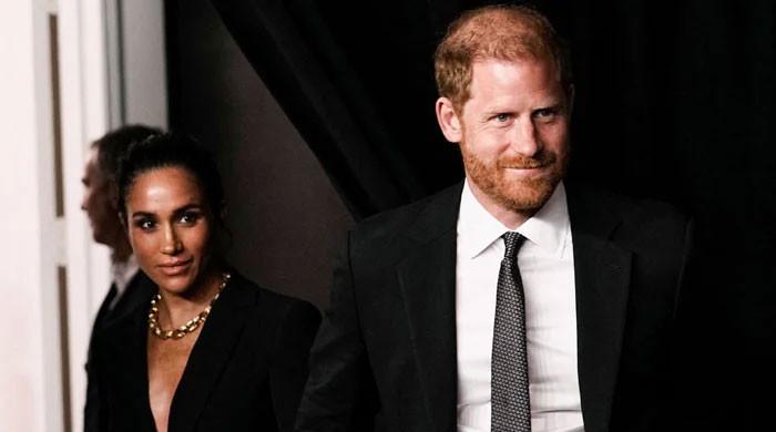 In the video, Meghan and Harry can be seen posing for a shoot backstage before the annual Project Healthy Minds’ World Mental Health Day Gala in Spring Studios in New York City Thursday.