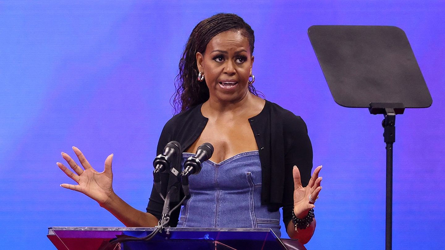 Former first lady Michelle Obama participates in opening night and celebrates “50 years of equal salary” during the day one of the 2023 US Open at Arthur Ashe Stadium at Usta Billie Jean King National Tennis Center on August 28, 2023. (Jean Catuffe/GC pictures)
