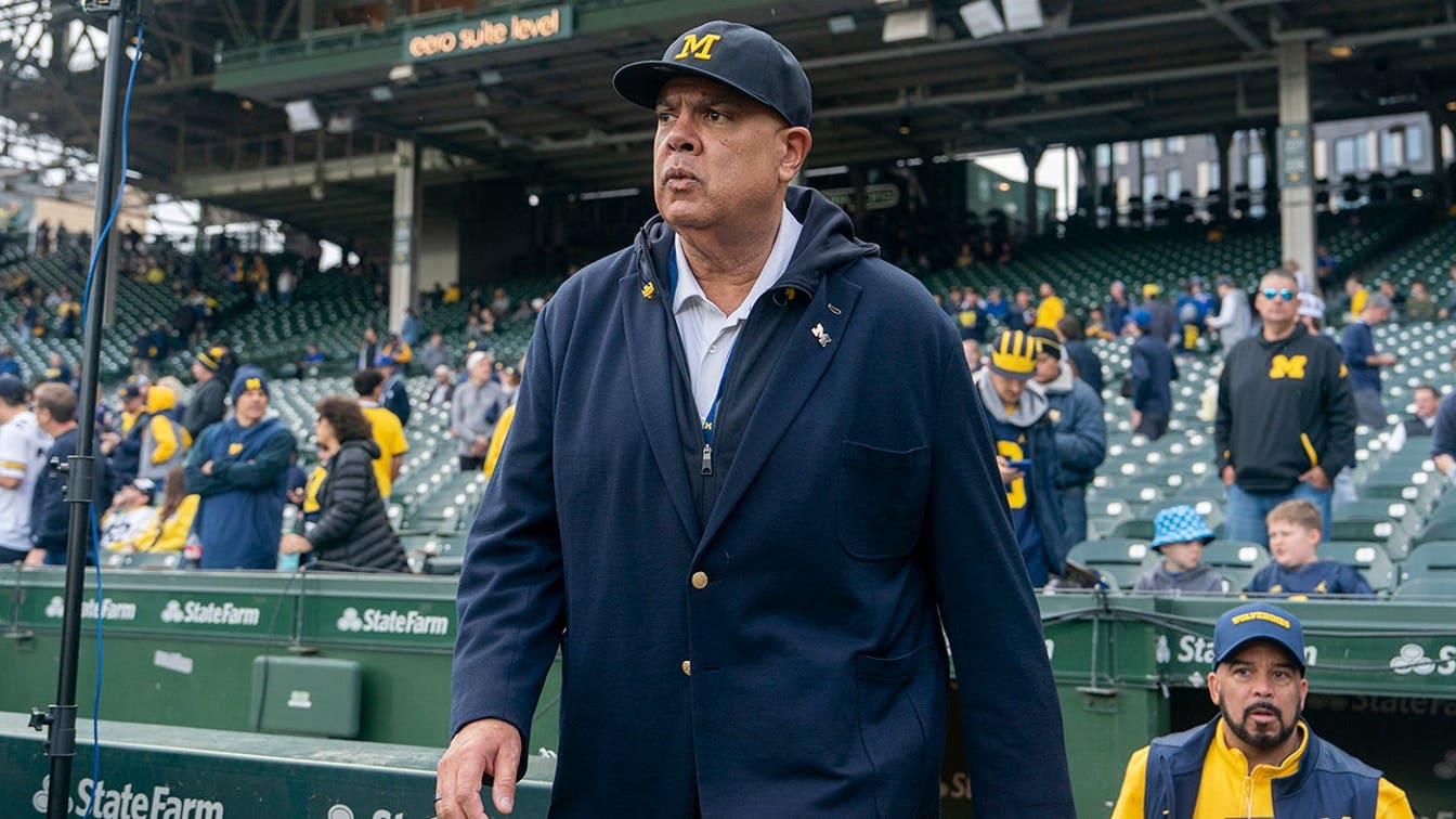 Michigan Wolverines athletic director Warde Manuel walks onto the field before a football game against the Northwestern Wildcats at Wrigley Field in Chicago, Illinois on November 15, 2025. (Ben Hsu/Icon Sportswire)
