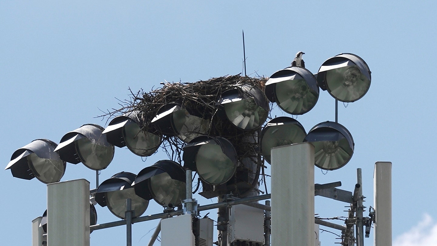 School officials plan to move the nest to another platform on the school’s land and build deterrent to the stadium lights when the chickens leave, hoping Ospreys will return next year.