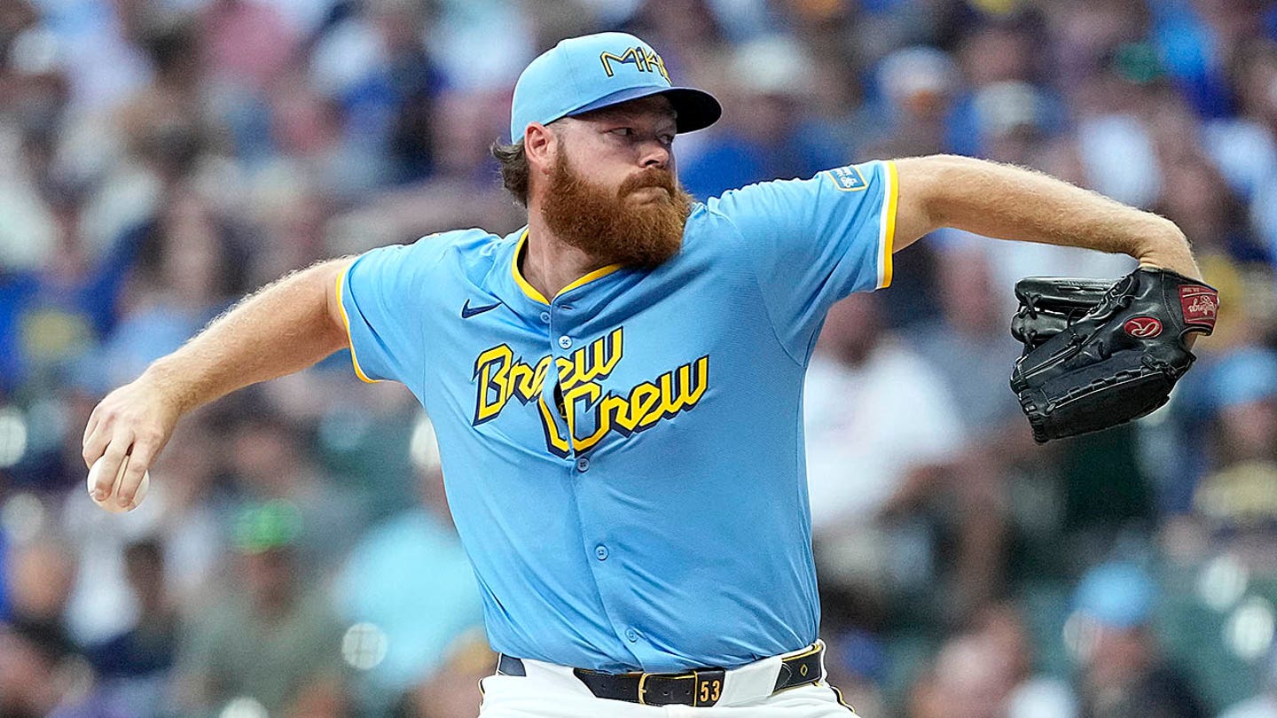Milwaukee Brewers’ Brandon Woodruff spaces during the first place of a baseball match against the New York Mets, Friday 8 August 825, in Milwaukee. (AP Photo/Aaron Gash)