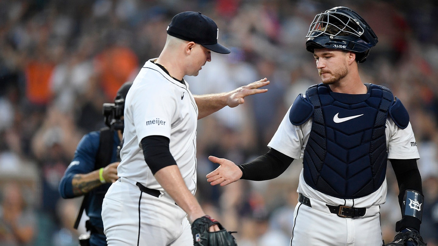Detroit Tigers Starts Pitcher Tarik Pushal, #29, and Catcher Dillon Dingler, #13, recognizes each other after the final out of the seventh lap of a baseball match against Minnesota Twins Sunday 29 June 2025 in Detroit. (AP Photo/Jose Juarez)