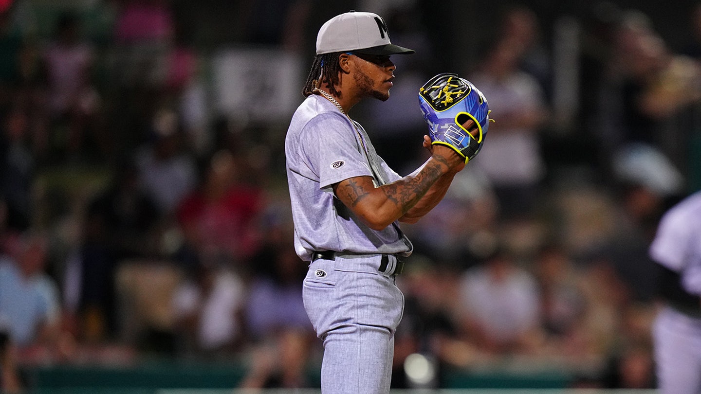 Antonio Jimenez of the Montgomery Biscuits looks on during the game between the Montgomery Biscuits and the Birmingham Barons at Rickwood Field on Tuesday, June 18, 2024 in Birmingham, Alabama. (Daniel Shirey/MLB Photos via Getty Images)