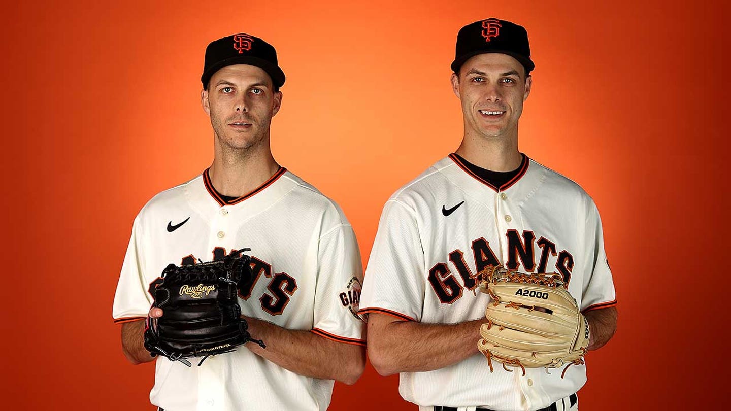 Pitchers Taylor Rogers #33 and Tyler Rogers #71 by San Francisco Giants pose for a portrait during the MLB photo day on Scottsdale Stadium on February 24, 2023 in Scottsdale, Arizona. (Christian Petersen/Getty Images)