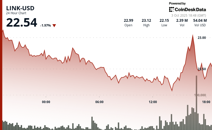 - Link changed hands within a range of $ 0.96 between $ 22.13 and $ 23.09, representing a 4.27% fluctuation in the 24-hour period.