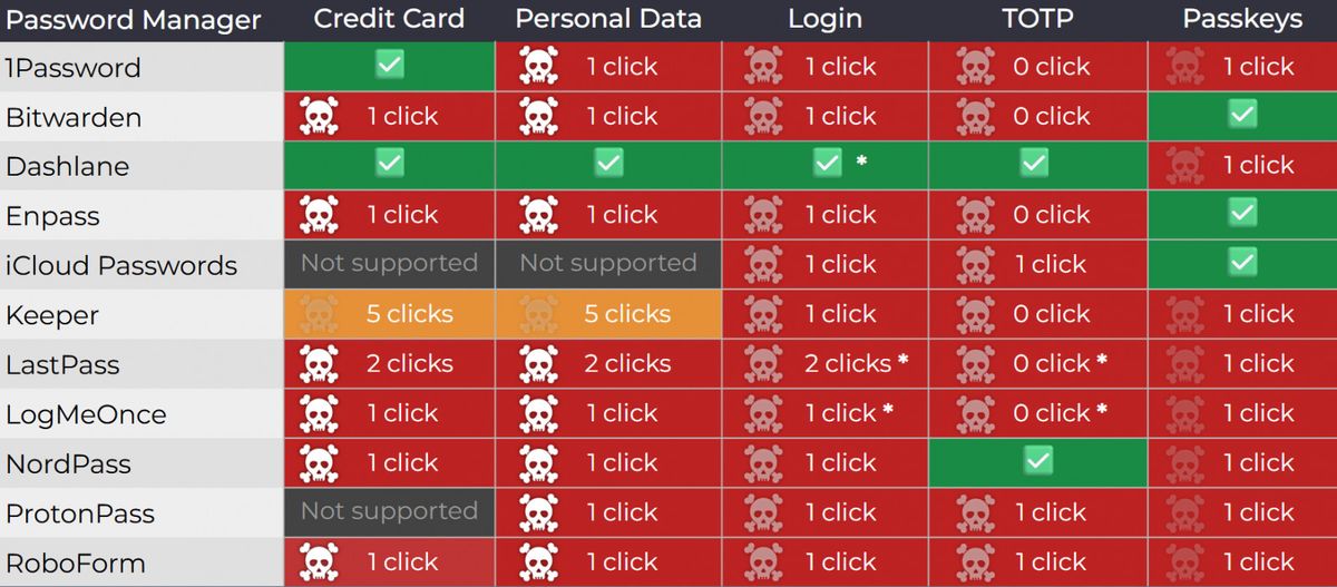 Multiple password managers remain vulnerable to the attack, including these versions: