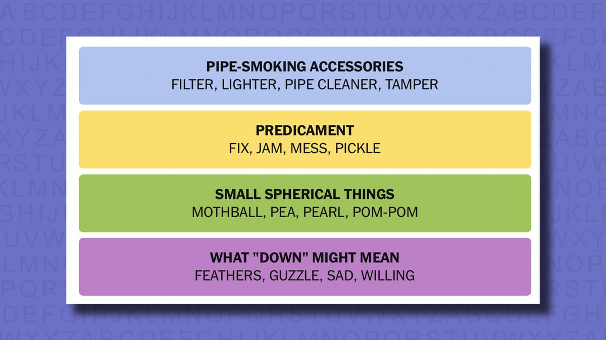 New Connections is one of several increasingly popular word games made by the New York Times. It challenges you to find groups of four objects that share something in common, and each group has another level of difficulty: green is light, yellow a little harder, blue often quite hard and purple usually very difficult.
