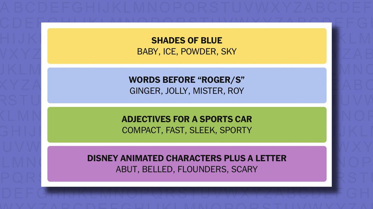 New Connections is one of several increasingly popular word games made by the New York Times. It challenges you to find groups of four objects that share something in common, and each group has another level of difficulty: green is light, yellow a little harder, blue often quite hard and purple usually very difficult.