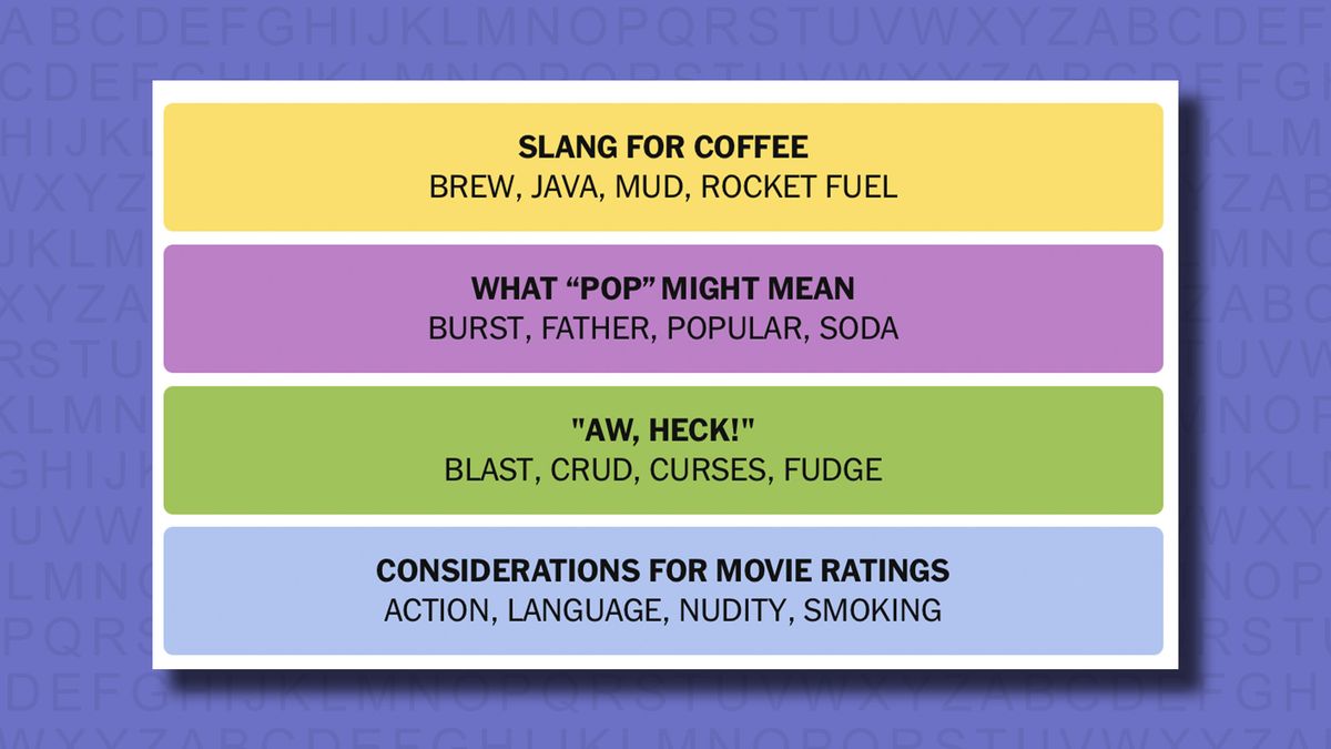 Four words eliminated what “pop” could mean coming together after a mix put dad, popular and soda next to each other, and I guessed what we were looking for.