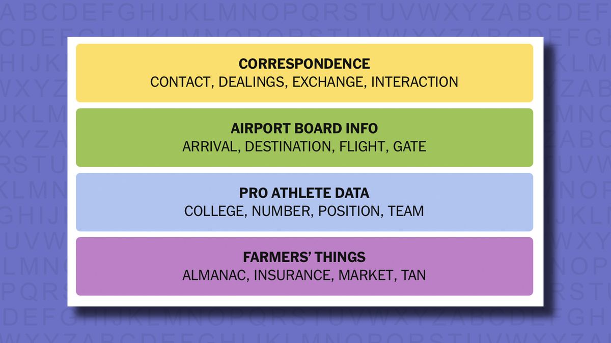 Next, I struggled to see what was left from the eight remaining words and landed at Pro Athlete data through some lucky mix.