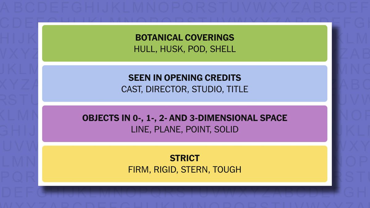 So how did I make two mistakes? Simply because the answers to yellow, strings, overlapped with a few words from other groups. The possible solutions were firm, stiff, hedge and hard-but solid seemed like it could go with the first pair of them, while Stern and Hull could also have been part of a boat-based grouping.